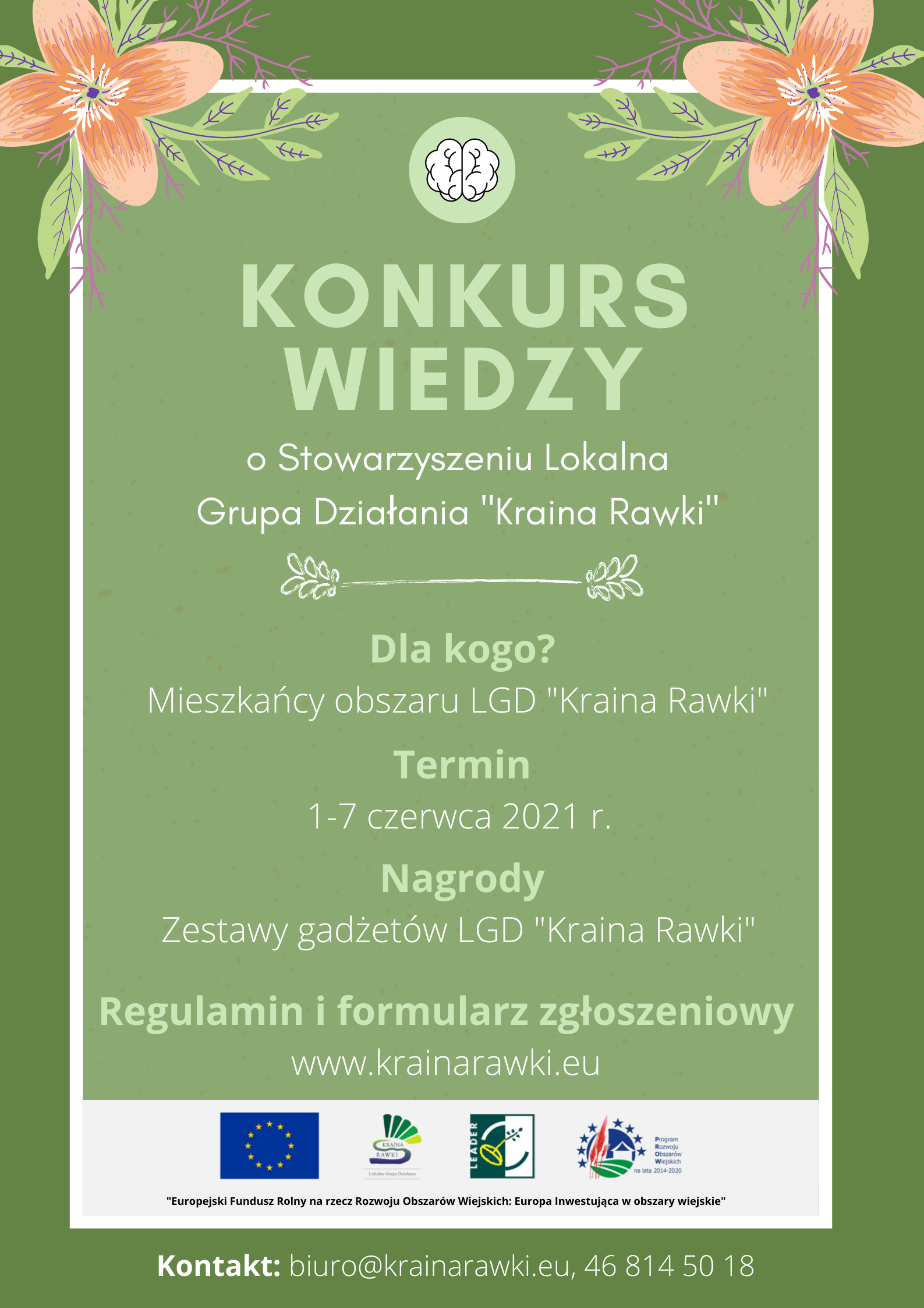 Z okazji obchodzonej przez nas w tym roku 15 rocznicy istnienia, przygotowaliśmy dla Was Konkurs Wiedzy o Stowarzyszeniu Lokalna Grupa Działania „Kraina Rawki”. Konkurs składa się z 9 pytań zamkniętych dotyczących LGD „Kraina Rawki”. W razie problemów z odpowiedzią, warto przejrzeć aktualności podsumowujące 15 lat naszych działań na naszym Facebooku i stronie internetowej.