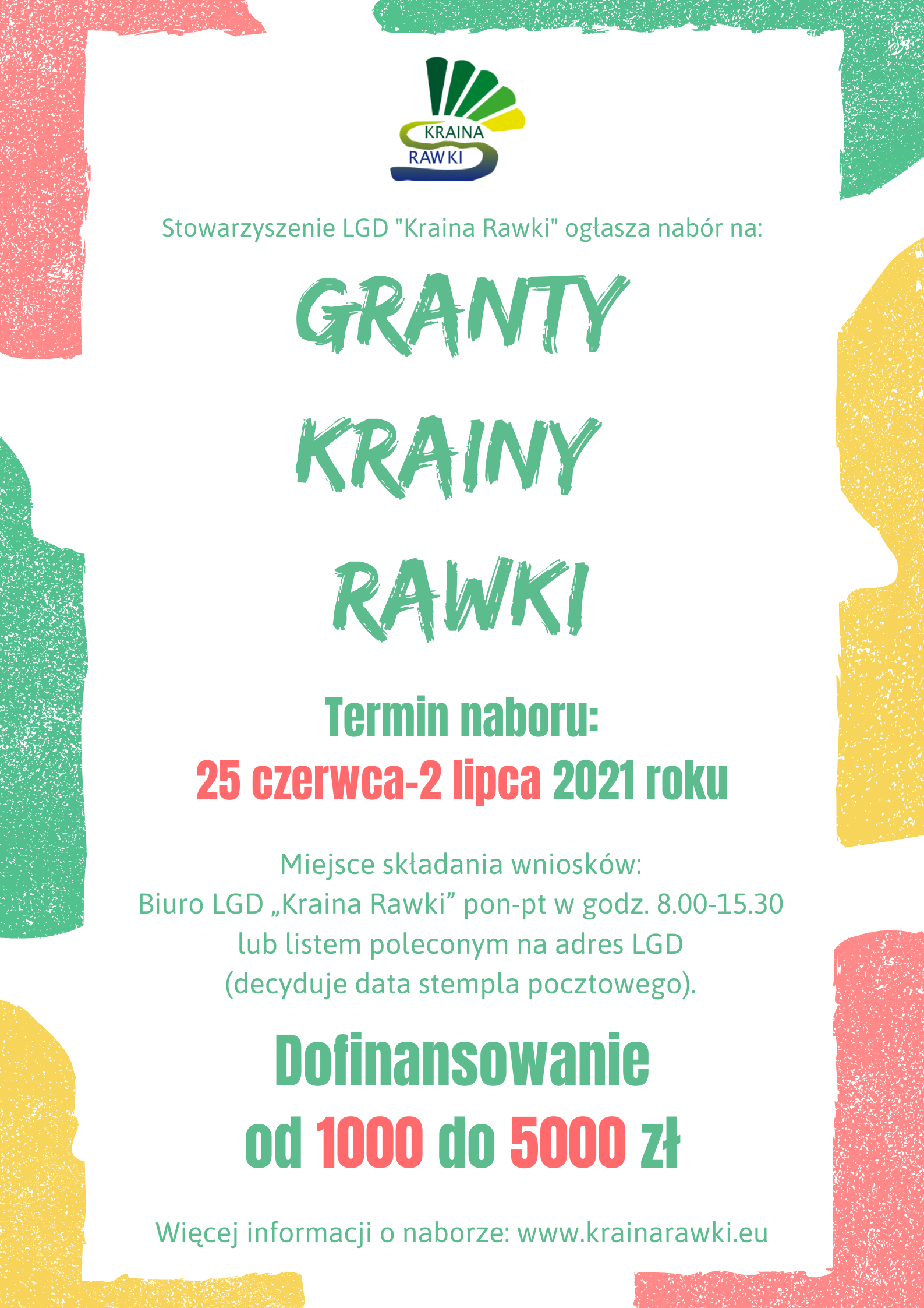 Serdecznie zapraszamy stowarzyszenia, fundacje, sołectwa, koła gospodyń wiejskich, ochotnicze straże pożarne, kluby sportowe oraz grupy nieformalne do składania wniosków o dofinansowanie od 1 000 do 5 000 złotych w ramach działania "Granty Krainy Rawki".