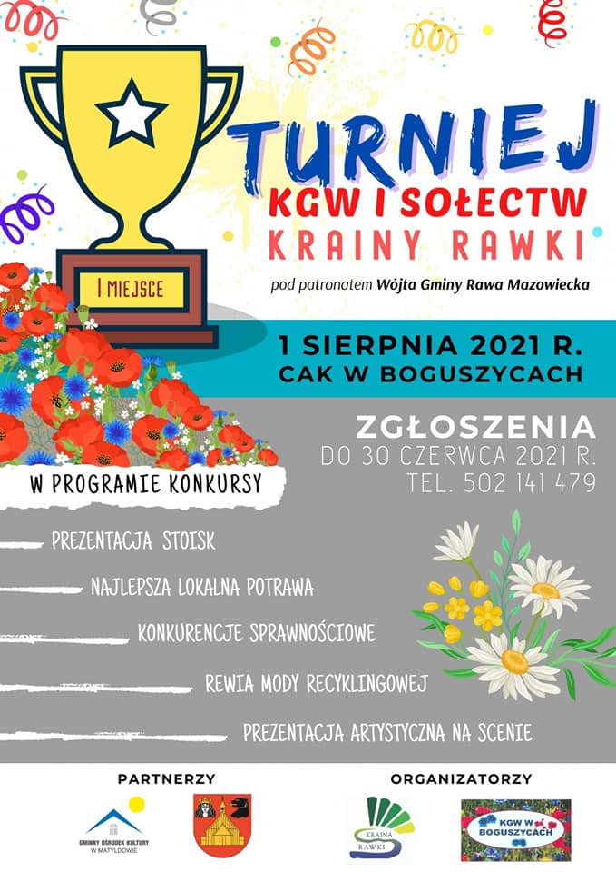W imieniu Koła Gospodyń w Boguszycach serdecznie zapraszamy do organizowanego w ramach Grantów Krainy Rawki Turnieju KGW i Sołectw Krainy Rawki