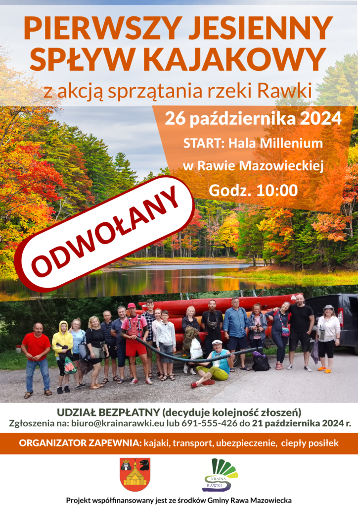 - Wspierasz lokalną inicjatywę – spływ realizowany jest w ramach zadania publicznego i jest współfinansowany ze środków Gminy Rawa Mazowiecka.